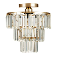 Lustre de Cristal Dourado para Sala de Estar, 3 Camadas, Abajur de Cristal e Estrutura com Acabamento Dourado