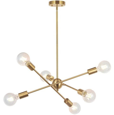Moderne Sputnik Kronleuchter 6 Lichter Gebürstet Messing Kronleuchter Mid Century Anhänger Beleuchtung Gold Decke Leuchte